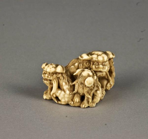 La composizione raffigura una femmina di shishi con due cuccioli; la madre trattiene tra le fauci una fune legata ad una Palla, simbolo del Puro Vuoto; un altro lembo della stessa corda è tenuto con i denti da uno dei due cuccioli, mentre l'altro piccolo sembra non voler partecipare a questo gioco.