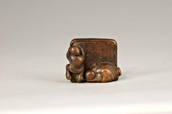 Due bambini giocano a nascondersi dietro un paravento di tipo tsuitate. Il kakurenbo è la versione giapponese del gioco del nascondino.