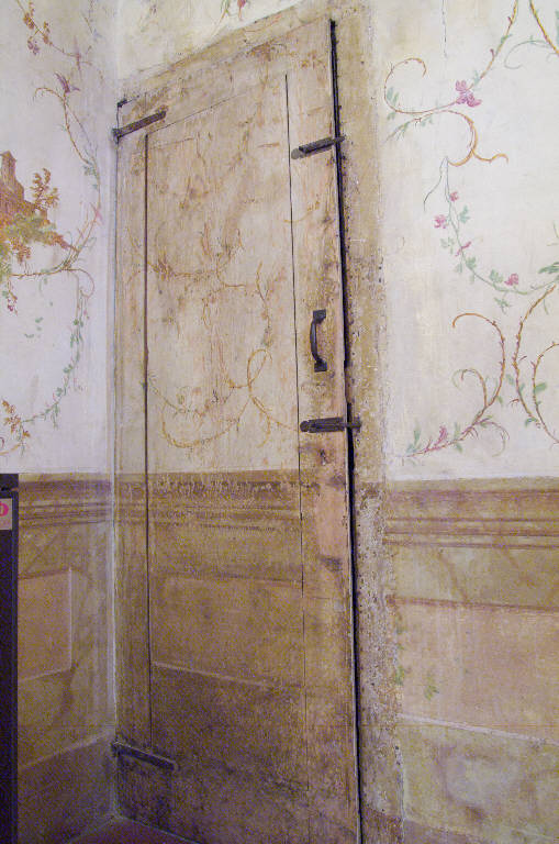 Porta ad un battente piatto privo di cornici modanata e intarsi.
