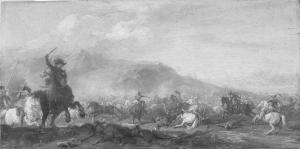- NOTIZIE STORICO CRITICHE Insieme a "Assalto di cavalleria" (Bergamo, Accademia Carrara, num. inv. 81LC00086), l'opera in esame fa parte di una coppia di scene di battaglia riferibili alla maniera del Borgognone.