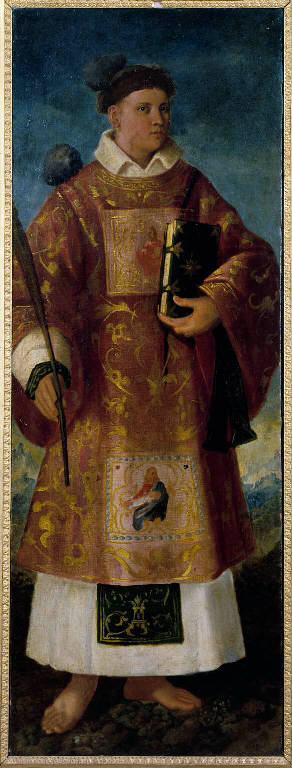 - NOTIZIE STORICO CRITICHE Si tratta dello scomparto laterale sinistro del "Trittico di Locatello". Gli altri scomparti sono: "Santa Caterina d'Alessandria" (Bergamo, Accademia Carrara, num. inv. 81LC00196) e "San Giacomo Maggiore" (già Venezia, già Proprietà Pietro Scarpa Antichità). Santo Stefano è stato errroneamente identificato con San Lorenzo. La notizia relativa alla committenza è stata data da R. Pallucchini e F. Rossi (Giovanni Cariani, 1983). Il dipinto è stato riportato su tela da un supporto originale ligneo. Giovanna Brambilla Ranise in "La raccolta dimezzata. Storia della dispersione della pinacoteca di Guglielmo Lochis (1789-1859)" riporta come data di acquisizione alla collezione Lochis il 1837.