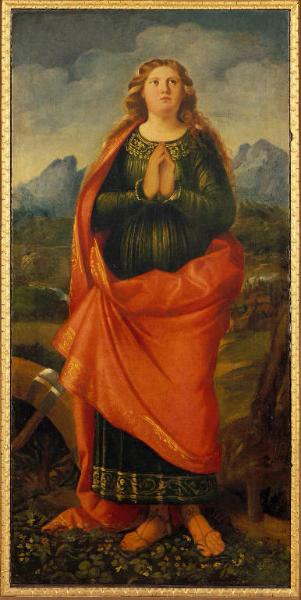 - NOTIZIE STORICO CRITICHE Si tratta dello scomparto centrale del "Trittico di Locatello". Gli altri scomparti sono: "Santo Stefano" (Bergamo, Accademia Carrara, num. inv. 81LC00192) e "San Giacomo Maggiore" (già Venezia, già Proprietà Pietro Scarpa Antichità). Il dipinto è stato riportato su tela da un supporto originale ligneo. Guglielmo Lochis acquistò l'opera prima del 1846.