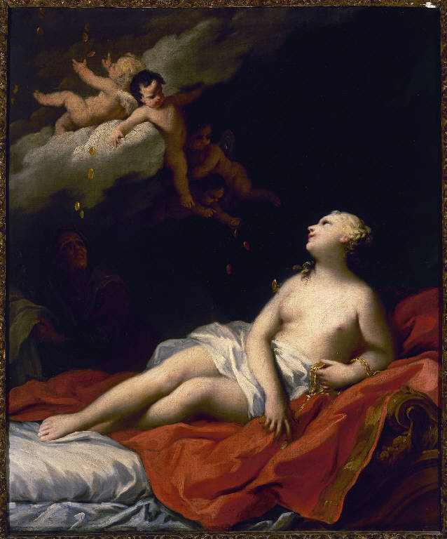 - NOTIZIE STORICO CRITICHE Il dipinto ha notevoli affinità con una tela già in collezione Arban a Venezia, attribuita all'Amigoni da Martini (1964), che differisce solo in alcuni particolari del letto e della veste. L'opera, facente parte del legato della nobildonna Sandra Maria Volpi Bassani D'Amico, deceduta nel 1989, fu acquisita dall'Accademia Carrara nel 1996.