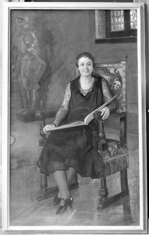 Ritratto di Alessandra Porro Viviani seduta con libro in mano