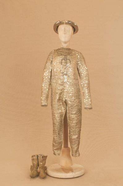 Costume allegorico da ballerino composto da veste e calzari. Si completa con un elmo che ha il codice C 07988.