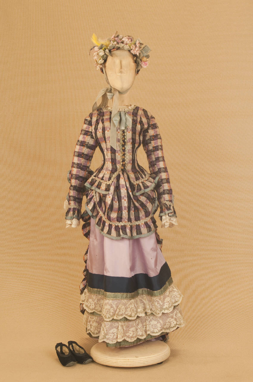 Costume da donna borghese composto da gonna, corpino, scarpe e cappello.