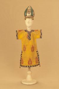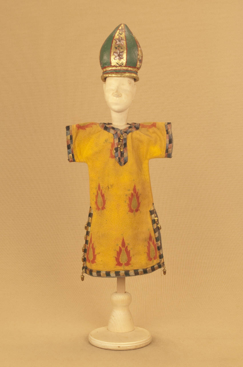 - NOTIZIE STORICO CRITICHE Costume realizzato per Il ballo "Excelsior", spettacolo che fu rappresentato la prima volta a Milano, al Teatro alla Scala, la sera dell'11 gennaio 1881. Autore del libretto e della coreografia era Luigi Manzotti, mentre Romualdo Marengo lo era della musica e Alfredo Edel delle scene e dei costumi.\nIl successo del ballo fu travolgente. Le repliche furono 103 nella stagione.\nLa versione marionettistica per la Compagnia Carlo Colla e Figli in due tempi e undici quadri fu allestita da Carlo II Colla col consenso dell'autore e presentata col titolo di "Civiltà e Progresso" nel 1895. Il titolo mutò poi nel tempo. Il primo allestimento del ballo ricordava ancora troppo l'originale scaligero. Ma fu sufficiente che lo spettacolo entrasse nella routine degli spostamenti della Compagnia perché le peculiarità del teatro marionettistico diventassero preponderanti.\nCosì l'"Excelsior" approdò al Teatro Gerolamo di Milano, quando la Compagnia ci entrò stabilmente nel 1906, proprio negli anni in cui, dopo qualche ultima apparizione, il "ballo grande" italiano, simbolico-narrativo sta tramontando sulle scene europee, divenendo unico retaggio del teatro delle marionette e, più particolarmente, della Compagnia Carlo Colla e Figli che ha continuato a riproporlo sino ad oggi, offrendo al pubblico di un secolo dopo la più vivida testimonianza del kolossal scaligero. Da nota scritta a matita sul "Giro Piazze della Compagnia Carlo Colla e Figli 1883-1912" si evince che la prima rappresentazione del ballo "Excelsior" è stata fatta a Caluso (TO) nel 1895.