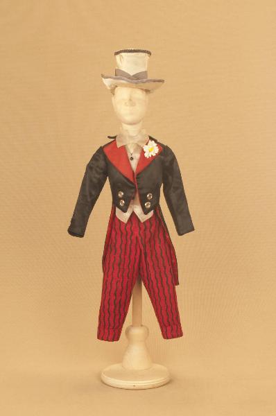 Costume borghese da bambino composto da pantaloni, davantino, gilet e frac. Si completa con un cilindro che ha il codice GOR 14284.
