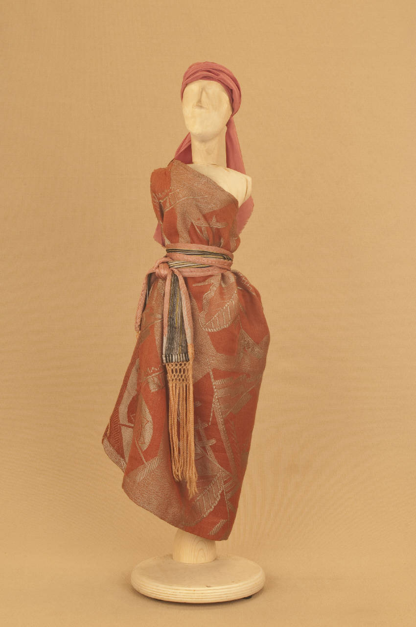 Costume da donna africana composto da veste, fusciacca e fascia per la testa.
