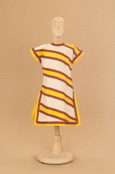 - NOTIZIE STORICO CRITICHE Il costume, che si completa con calzamaglia di cotone, con calze e cotta in maglia di ferro e con cuffia in pelle, è stato realizzato per il "Macbeth". Come altre opere di Shakespeare quali "Re Lear", "Otello", "Romeo e Giulietta", il "Macbeth" fu sempre presente nel repertorio delle Compagnie di marionette e burattini che, così, compivano la loro operazione di divulgazione in ambito popolare spostandosi di paesi in città.\nLa Carlo Colla e Figli, abbandonato il vecchio spettacolo entrato in repertorio come si rileva da un elenco delle produzioni di Carlo Colla nel Libro Mastro datato 1863-1879, ha messo in scena nel 2007 questo nuovo allestimento per lo Shakespeare Theater di Chicago, con la supervisione di Kate Bucley che ha curato la parte attorale in lingua ed i tagli al testo. Lo spettacolo, dopo la programmazione a Chicago, ha proseguito le repliche al New Victory Theater di Broadway e nel 2010 è apparso per la prima volta in Europa al Piccolo Teatro Grassi di Milano.