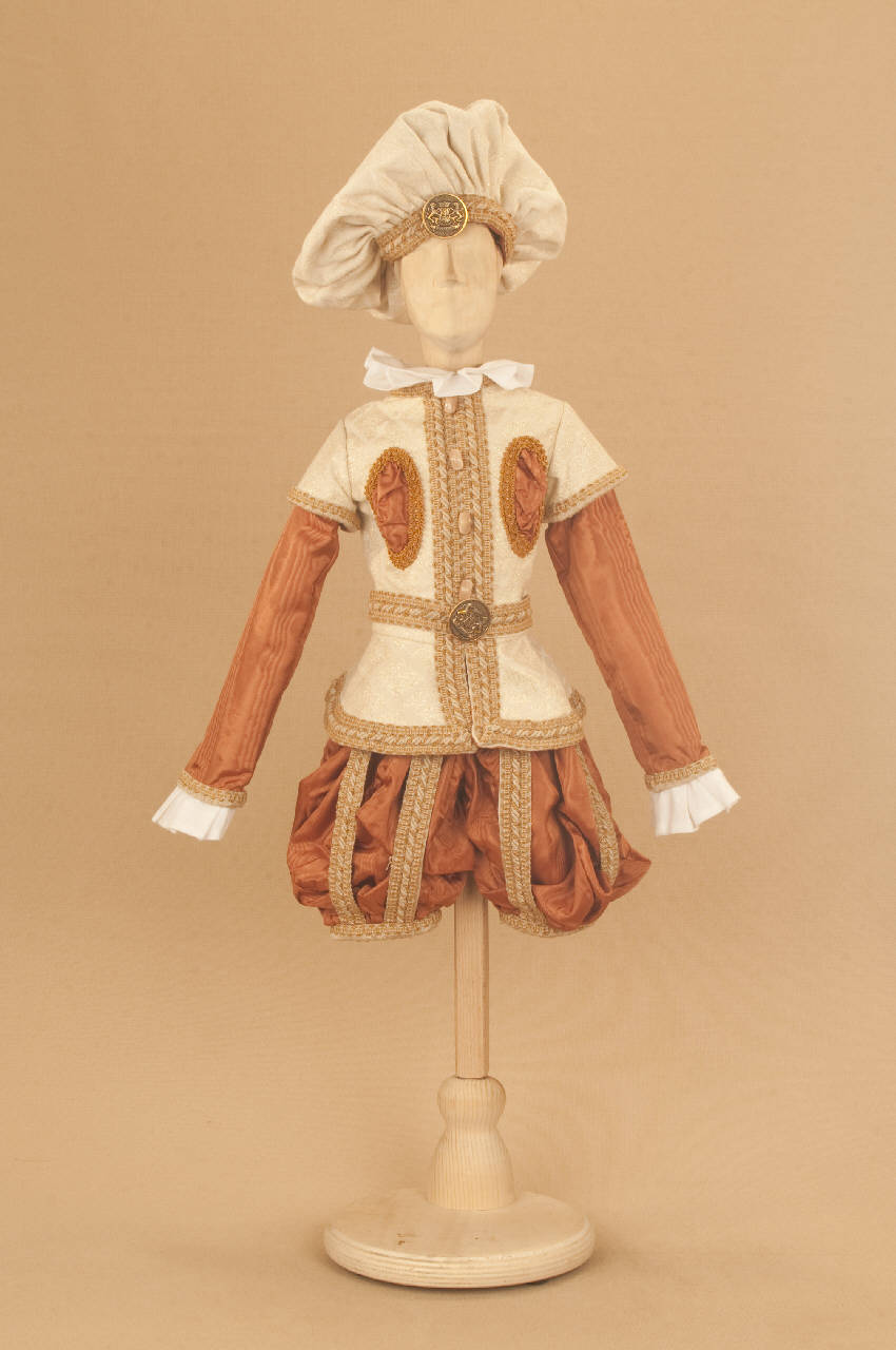 Livrea cinquecentesca da uomo composta da braghe, farsetto, cintura, calzamaglia, scarpe e cappello.