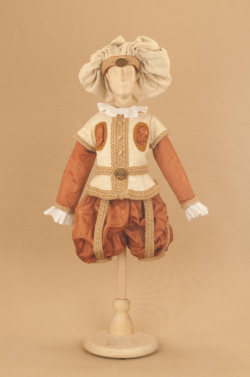 Livrea cinquecentesca da uomo composta da braghe, farsetto, cintura, calzamaglia, scarpe e cappello.