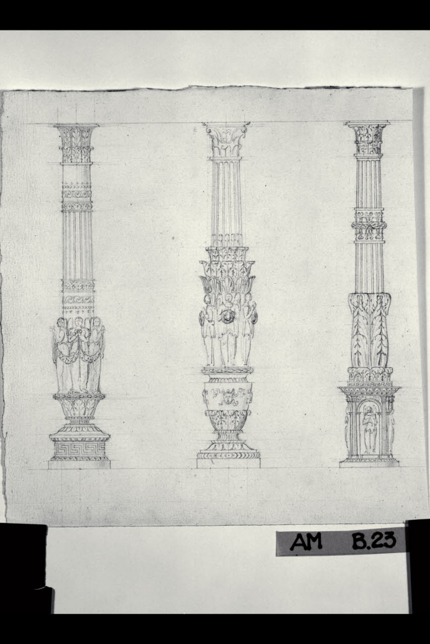 Prospetti di colonna decorata a rilievi. Prospetti di colonna decorata a rilievi