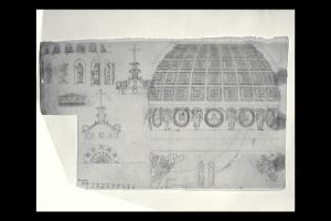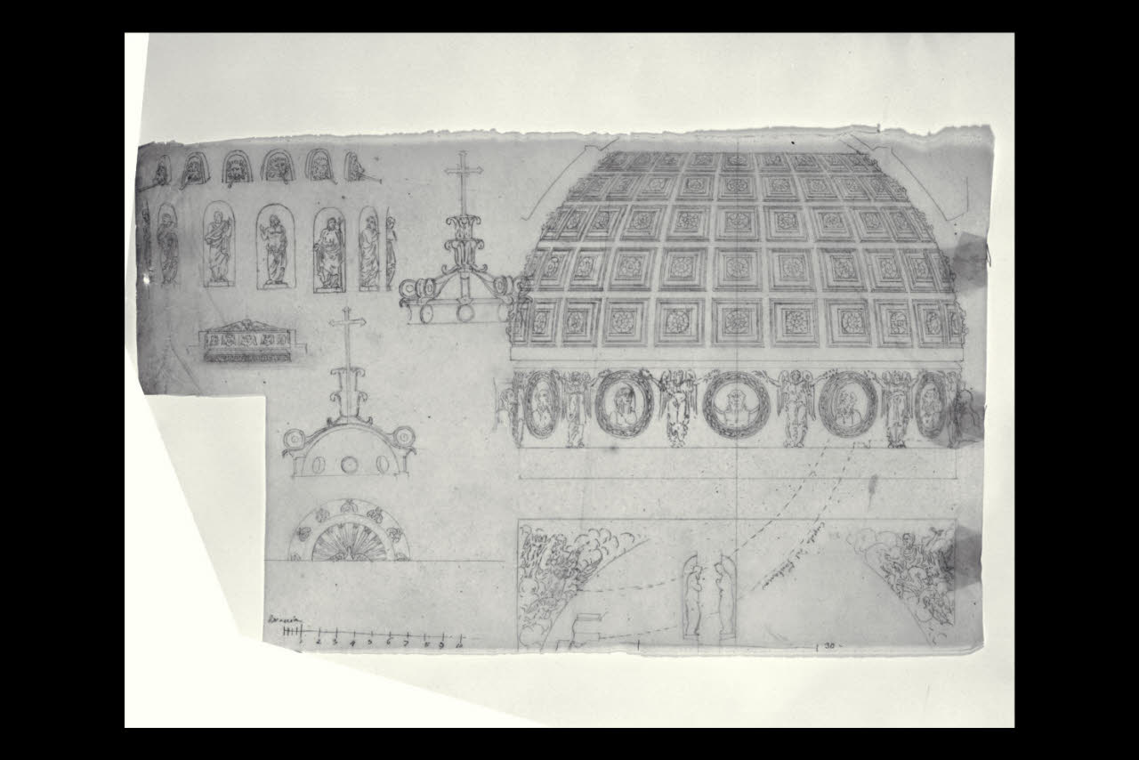 Sezione trasversale della cupola del Duomo di Bergamo con particolari della decorazione scultorea, della lanterna e dei pennacchi. Sezione trasversale della cupola del Duomo di Bergamo con particolari della decorazione scultorea, della lanterna e dei pennacchi