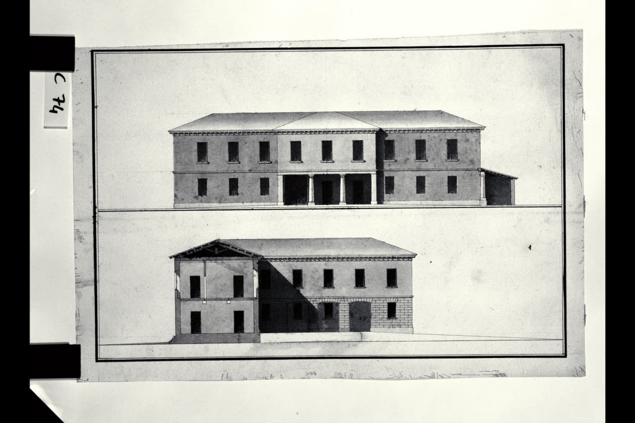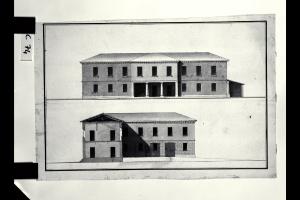 Prospetto e sezione di un'ala laterale della Villa Sormani a Cornate d'Adda. Prospetto e sezione di un'ala laterale della Villa Sormani a Cornate d'Adda