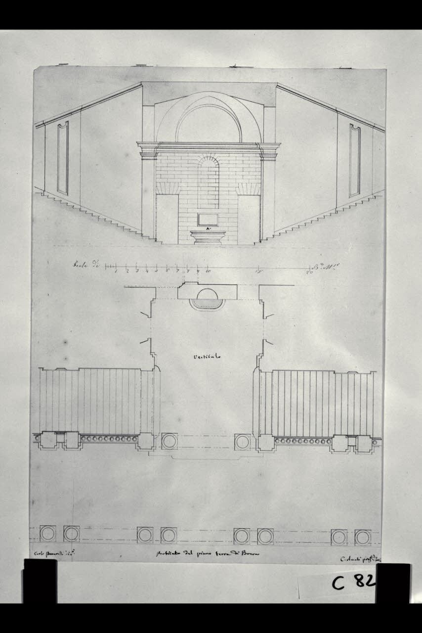 Pianta e prospetto del porticato del piano terra del Palazzo di Brera a Milano. Pianta e prospetto del porticato del piano terra del Palazzo di Brera a Milano