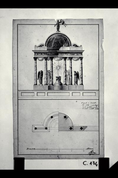 Pianta e prospetto dell'altare maggiore della chiesa di S. Giorgio a Cornate d'Adda. Pianta e prospetto dell'altare maggiore della chiesa di S. Giorgio a Cornate d'Adda