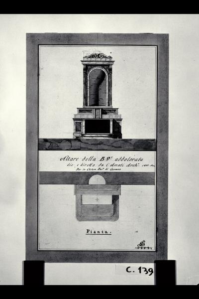 Pianta e prospetto dell'altare della Beata Vergine Addolorata della chiesa della Beata Vergine Immacolata e di S. Zeno a Cassano d'Adda. Pianta e prospetto dell'altare della Beata Vergine Addolorata della chiesa della Beata Vergine Immacolata e di S. Zeno a Cassano d'Adda
