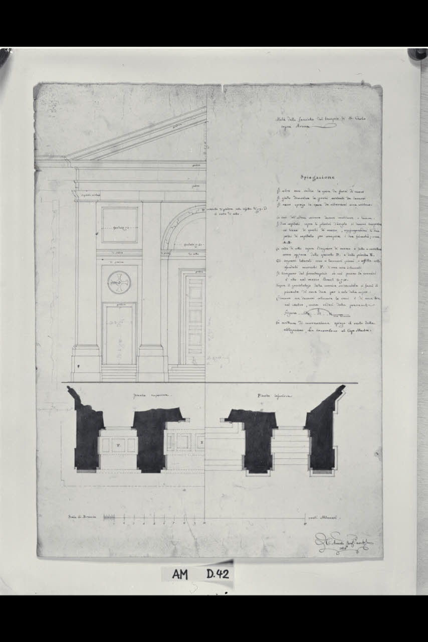 Pianta e prospetto della fronte del Tempio di S. Carlo sopra Arona. Pianta e prospetto della fronte del Tempio di S. Carlo sopra Arona