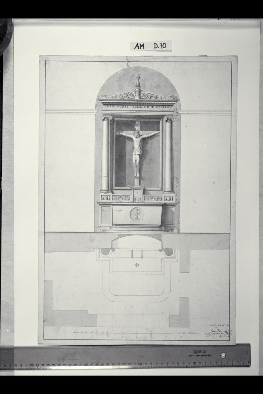 Pianta e prospetto di altare con crocifisso. Pianta e prospetto di altare con crocifisso