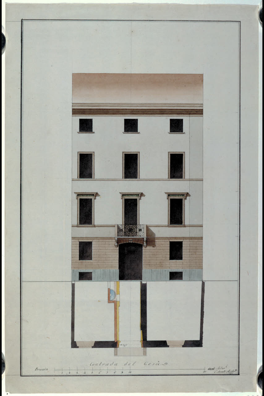 Pianta e prospetto della casa di Carlo Amati a Milano (già Contrada del Gesù 1291). Pianta e prospetto della casa di Carlo Amati a Milano (già Contrada del Gesù 1291)