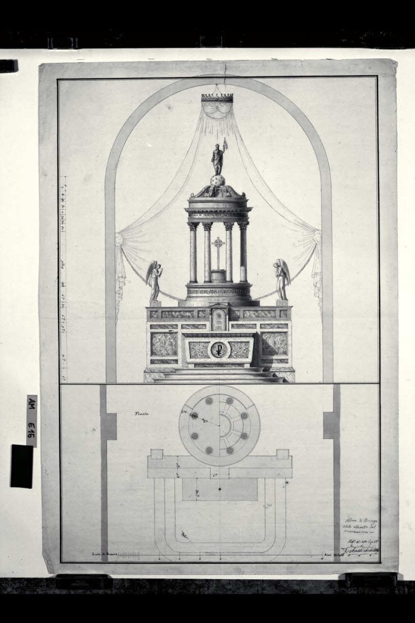 Pianta e prospetto dell'altare della chiesa di S. Giovanni Battista a Binago. Pianta e prospetto dell'altare della chiesa di S. Giovanni Battista a Binago