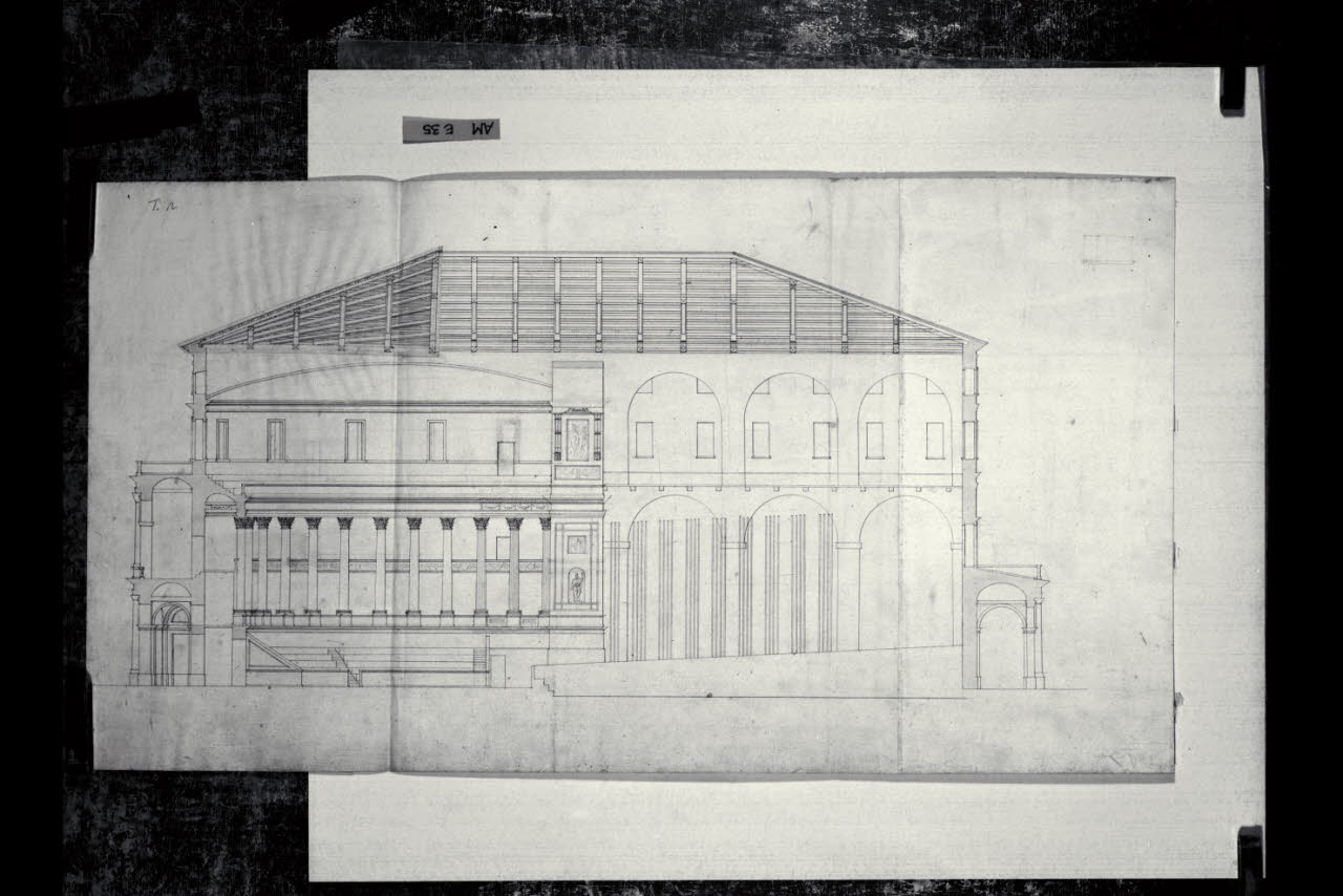 Sezione longitudinale di un teatro diurno e notturno. Sezione longitudinale di un teatro diurno e notturno