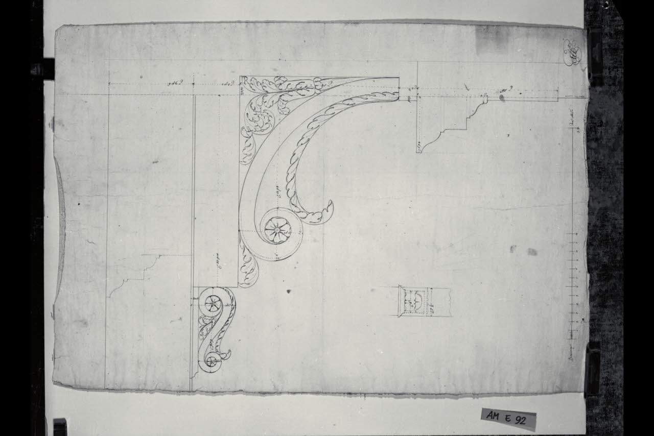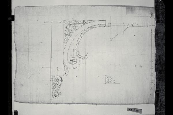 Sezione e ornati di una mensola per la chiesa di S. Carlo a Milano e prospetto di una voluta. Sezione e ornati di una mensola per la chiesa di S. Carlo a Milano e prospetto di una voluta