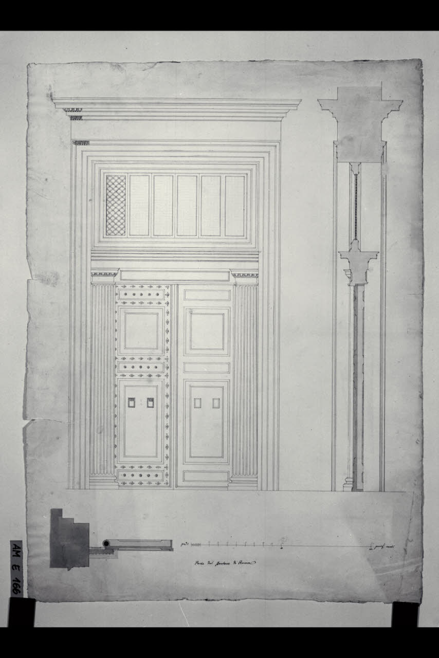 Pianta, prospetto e sezione della porta del Pantheon a Roma. Pianta, prospetto e sezione della porta del Pantheon a Roma
