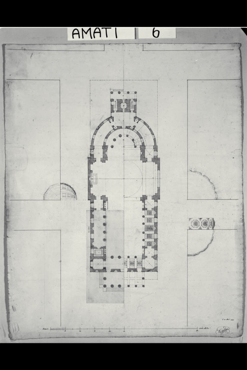 Pianta della chiesa di S. Antonio Nuovo a Trieste con dettagli dei lacunari e della cupola. Pianta della chiesa di S. Antonio Nuovo a Trieste con dettagli dei lacunari e della cupola