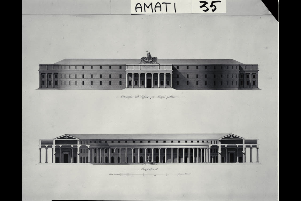Prospetto e sezione di bagni pubblici. Prospetto e sezione di bagni pubblici