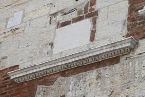Mensola con cornice modanata, spigoli vivi e decorazione ad ovuli.