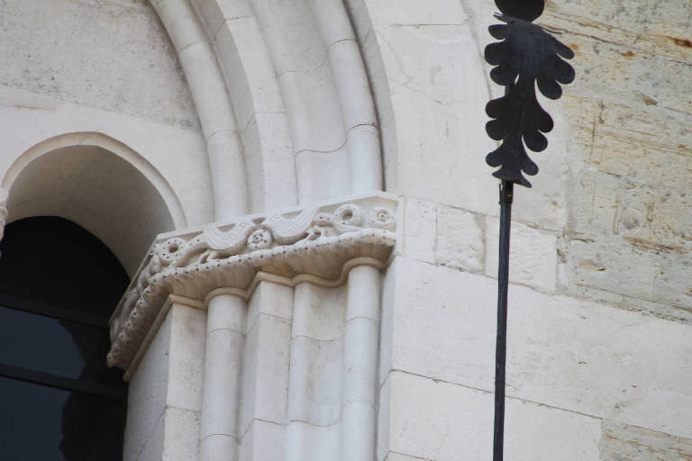 Fregio rettangolare decorato a rilievo.