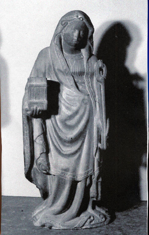 - NOTIZIE STORICO CRITICHE proveniente dal capitello di pilone 68. La scultura presenta le caratteristiche stilistiche della scuola di Jacopino da Tradate, in particolare la Sant'Apollonia presenta dei virtuosismi decorativi riscontrabili nei ricami di bordura delle vesti e spiccato realismo nella descrizione degli oggetti che sostiene tra le mani. Ascrivibile ai primi decenni del 1400.\nLa bossaglia l'attribuisce all'ambito del Maestro dell'arca Torelli.