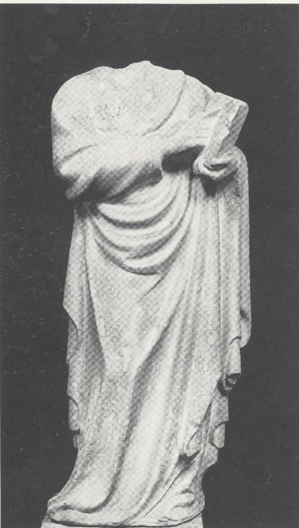 - NOTIZIE STORICO CRITICHE Statua proveninete da un capitello di pilone. Difficilmente ascrivibile ad un ambito scultoreo in quanto acefala. Collocabile cornologicamente tra la fine del 1300 e i primi anni del 1400.