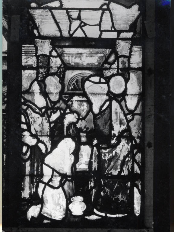 - NOTIZIE STORICO CRITICHE vetrata di difficile attibuzione, probabialelmente un maestro gesuato di mano insicura che nel tratto pieno ricorda i modi di Niccolò da Varallo.