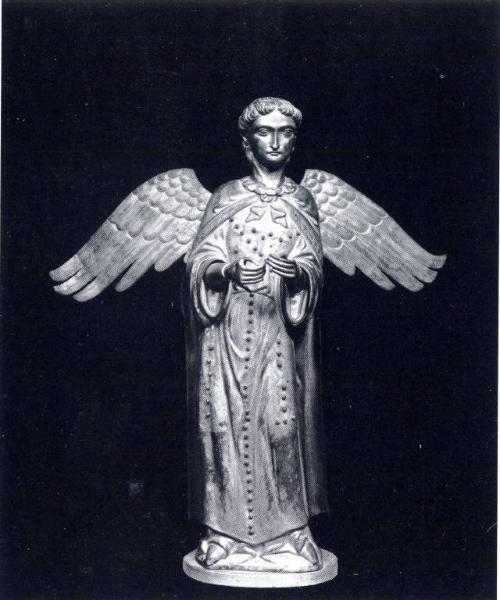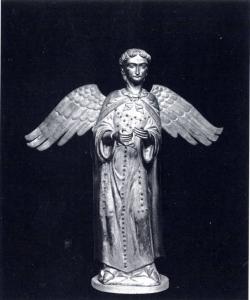 figura angelica avvolta in lunghi panneggi.