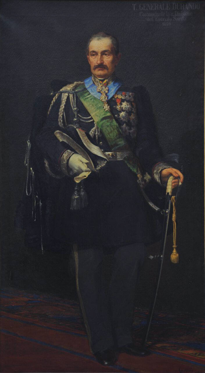 - NOTIZIE STORICO CRITICHE Comandante generale della Divisione militare sabauda combatté a San Martino (1859). L'elenco delle decorazioni che porta sull'uniforme: Medaglia d'argento al valor militare ; medaglia della battaglia di Chiva; medaglia della presa di Morella ; medaglia di Crimea (Gran Bretagna) ; medaglia commemorativa della seconda guerra d'indipendenza (Francia) ; medaglia per l'Indipendenza e l'Unità d'Italia. Esiste nell'Archivio Storico del Comune di Mantova, fondo Archivio ex Museo del Risorgimento e della Resistenza Renato Giusti, una fotografia (albumina)del dipinto in oggetto databile tra il 1875 ed il 1920, cfr. http://www.lombardiabeniculturali.it/fotografie/schede/IMM-2s010-0002018