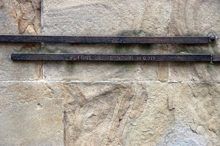- NOTIZIE STORICO CRITICHE L'oggetto è noto convenzionalmente com "Misura dei tessitori"; l'iscrizione riporta la misura convenzionale per questo strumento di lavoro dei tessitori, espressa con il sistema metrico decimale .