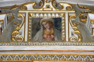 - NOTIZIE STORICO CRITICHE L'affresco è stato eseguito, con ogni probablità, da un decoratore specializzato attivo nella bottega di Francesco e Lorenzo Porta, che lavorano alla decorazione delle volte delle due campate della navata destra della Basilica tra il 1582 e il 1584 (Cortesi Bosco, in "I pittori bergamaschi...Il Seicento", vol. II, pp. 92-94, nota 5).