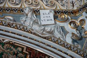- NOTIZIE STORICO CRITICHE Le figurette di sibille poste nei piccoli pennacchi degli archi sono state realizzate da Lorenzo Porta, stuccatore originario di Osteno, sul lago di Lugano, tra il 1615 e il 1616: in quegli anni, infatti, i libri contabili della Basilica registrano pagamenti per i lavori di decorazione che interessarono l'intera area della cupola a Lorenzo, appunto, e ai figli Girolamo e Giovanni Battista (Cortesi Bosco, in "I pittori bergamaschi...Il Seicento", vol. II, pp. 92-94, nota 5)