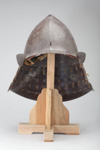 - NOTIZIE STORICO CRITICHE La forma di questo elmo è evidentemente europea e non giapponese. In particolare essa ricorda quella nota in italiano come zuccotto, in voga fin dal XV secolo. I giapponesi conobbero questo tipo di elmo tra la metà del XVI e l'inizio del XVII secolo, allorché gli europei raggiunsero per la prima volta l'arcipelago. Gli stessi armaioli giapponesi cominciarono da subito a realizzare elmi che imitassero quelli europei, e perciò noti come nanban kabuto (letteralmente "elmo dei barbari del sud").\nIn quello stesso periodo accadde anche che i militari giapponesi usassero originali oggetti europei, magari adattandoli con opportune modifiche al proprio gusto. E' successo, ad esempio, per una nota armatura attualmente conservata nel tempio Kishu Toshogu nella prefettura Wakayama, composta da pezzi di un'armatura italiana della fine del XVI secolo, donata da Tokugawa Ieyasu al suo decimo figlio Yorinobu (1602-1671).
