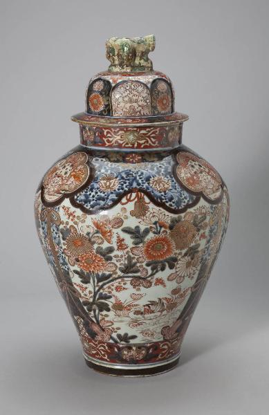 - NOTIZIE STORICO CRITICHE Esemplare di produzione delle fornaci di Arita tra la fine del Seicento e l'inizio del Settecento, di una tipologia destinata all'esportazione verso l'Occidente. La colorazione del coperchio non ha alcuna pertinenza con quella del resto del vaso; potrebbe essere una ricostruzione.