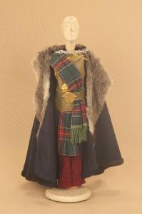 - NOTIZIE STORICO CRITICHE Il costume, che si completa con cotta in maglia di ferro, è stato realizzato per il "Macbeth". Come altre opere di Shakespeare quali "Re Lear", "Otello", "Romeo e Giulietta", il "Macbeth" fu sempre presente nel repertorio delle Compagnie di marionette e burattini che, così, compivano la loro operazione di divulgazione in ambito popolare spostandosi di paesi in città.\nLa Carlo Colla e Figli, abbandonato il vecchio spettacolo entrato in repertorio come si rileva da un elenco delle produzioni di Carlo Colla nel Libro Mastro datato 1863-1879, ha messo in scena nel 2007 questo nuovo allestimento per lo Shakespeare Theater di Chicago, con la supervisione di Kate Bucley che ha curato la parte attorale in lingua ed i tagli al testo. Lo spettacolo, dopo la programmazione a Chicago, ha proseguito le repliche al New Victory Theater di Broadway e nel 2010 è apparso per la prima volta in Europa al Piccolo Teatro Grassi di Milano.