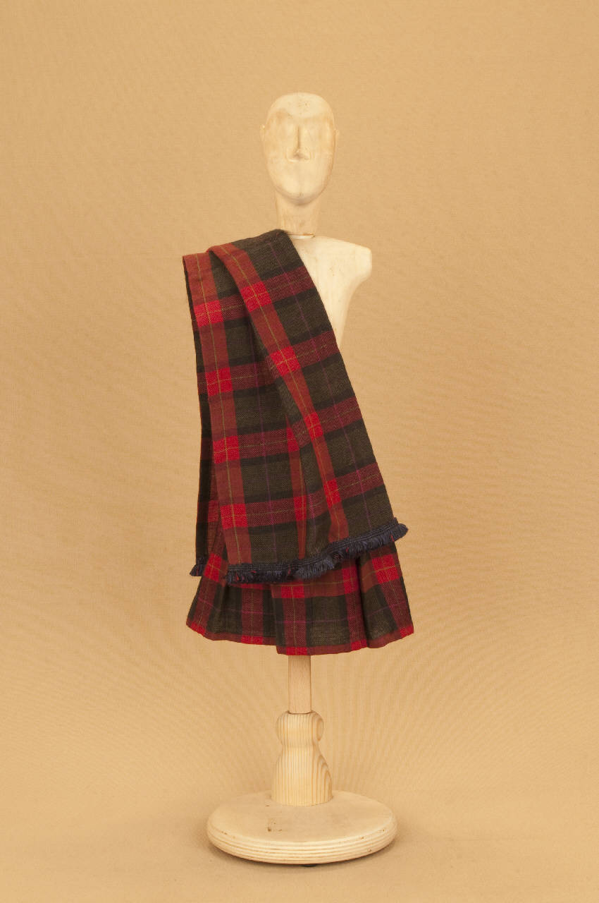 Costume da uomo scozzese composto da kilt e sciarpa.