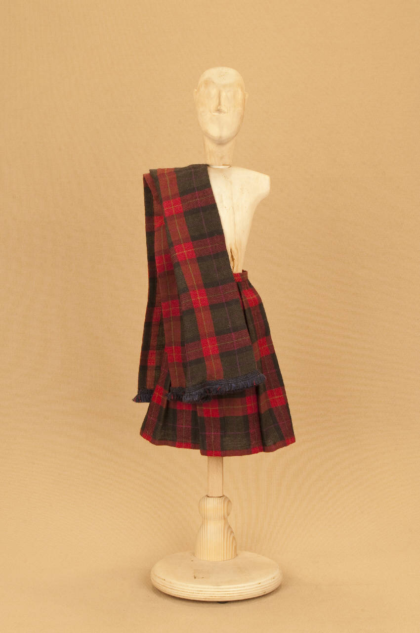 Costume da uomo scozzese composto da kilt e sciarpa.