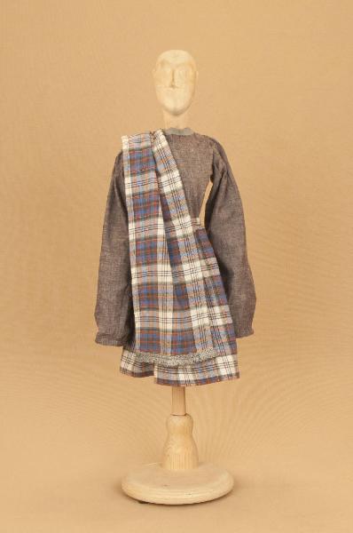 Costume da uomo scozzese composto da kilt, sciarpa e corpino.