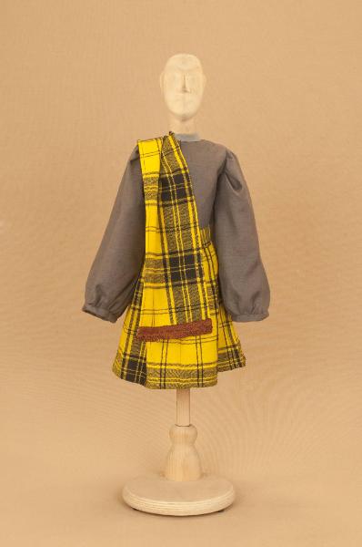 Costume da uomo scozzese composto da kilt, sciarpa e corpino.