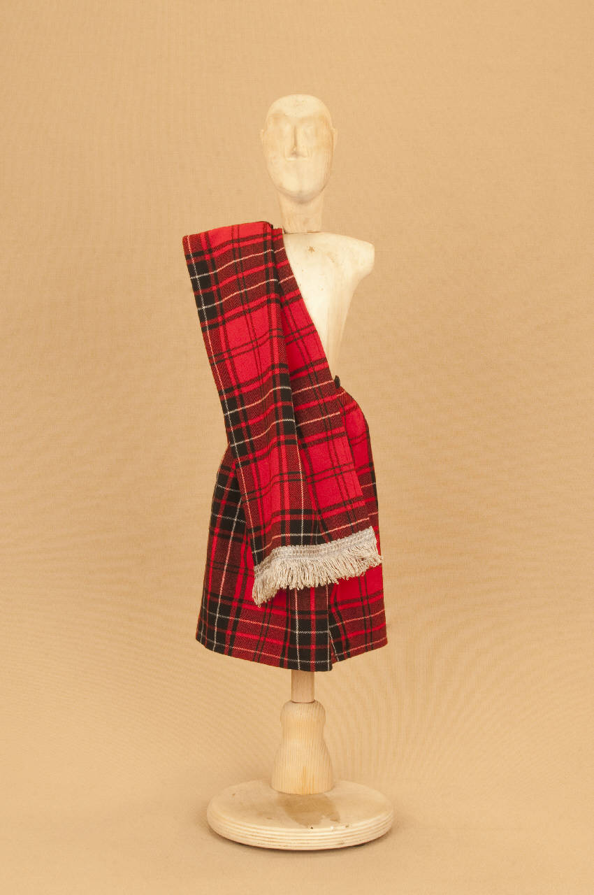Costume da uomo scozzese composto da kilt e sciarpa.