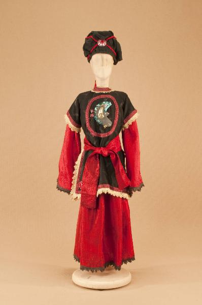 Costume folcloristico orientale composto da gonna, sopravveste, fascia e turbante.